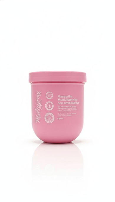 La Mascarilla capilar multivitamínica Milagros es un verdadero coctel para tu cabello. Es la solución ideal para cabellos alisados, decolorados y dañados, ya que no solo detiene la caída, sino que también fortalece la fibra capilar.